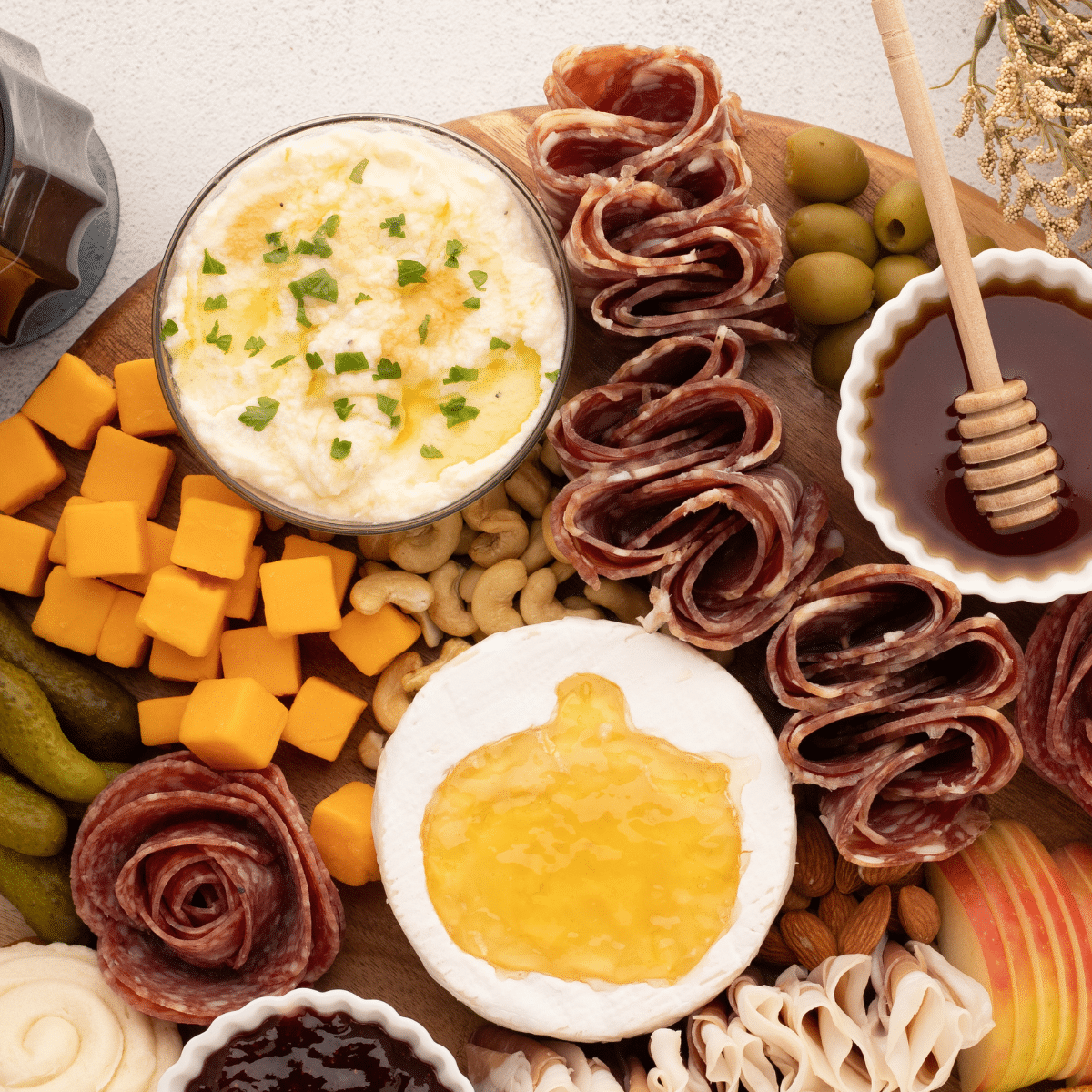 Whipped ricotta dip with a honey drizzle is quick, creamy, and so delicious, making it perfect for serving with veggies, crostini, or pita chips.