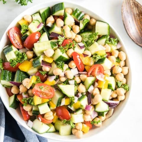 This light and refreshing Chickpea Salad with Cucumbers and Tomatoes is a versatile side dish that will add a burst of color, texture, and nutrition to your menu.
