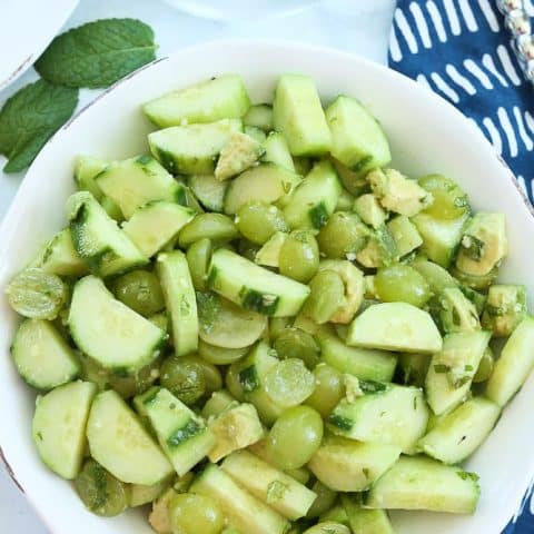 Cucumber Salad takes a new spin by adding sweet green grapes, creamy avocado, and fresh mint. This is refreshing and delicious!