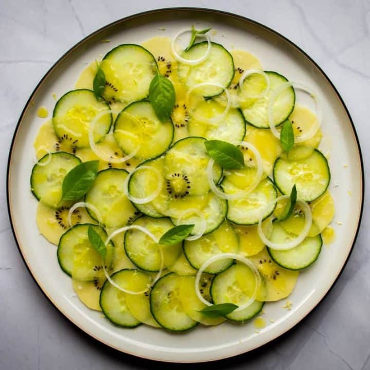 This cucumber carpaccio from 3-star Michelin French chef Alain Passard is stunning and delicious. It’s actually quite easy to make too and perfect for summer.