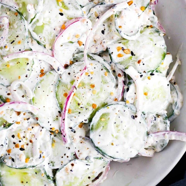Yogurt Ranch Cucumber Salad is sure to become your new favorite cucumber salad! You’ll love serving this twist on a classic until the end of this summer and look forward to serving it again next summer!
