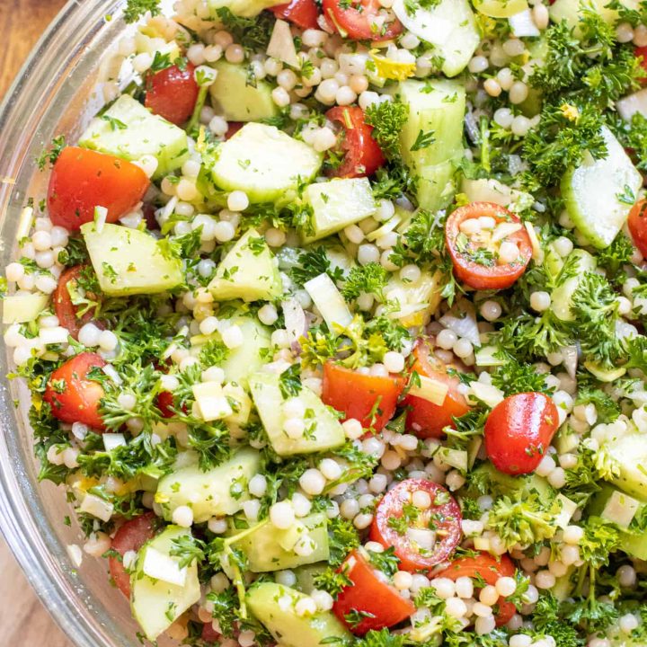 This Israeli Couscous Cucumber Salad is your new favorite summer salad! It's bright, light with fresh herbs and summer garden vegetables, but with the Israeli couscous, it also makes it hearty enough for lunch and
