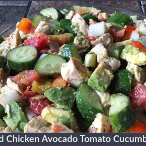 Chopped Chicken Avocado Tomato Cucumber Salad: An easy & veggie-packed summer dinner salad recipe. This crunchy-delicious salad also happens to be both low carb and gluten-free!