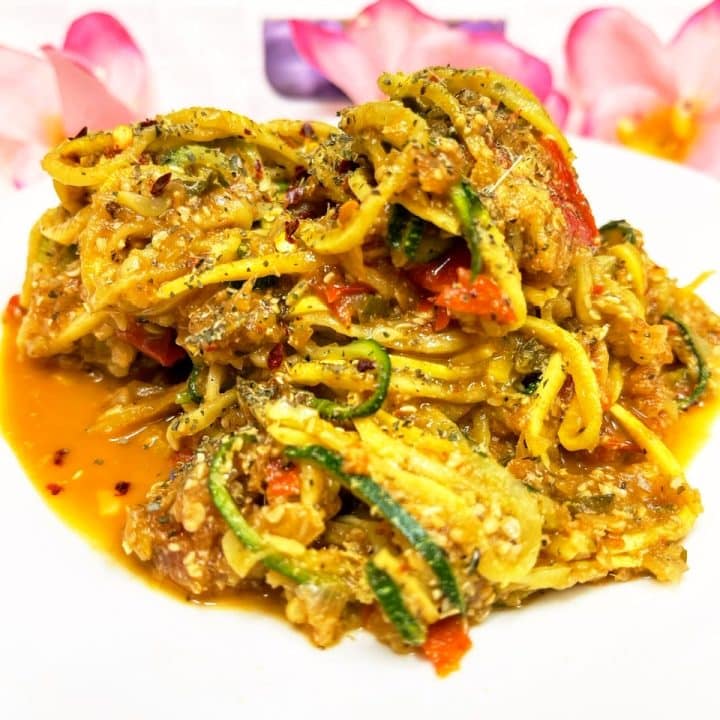 Vegetarian Keto Zoodles Recipe With Red Pepper Sauce