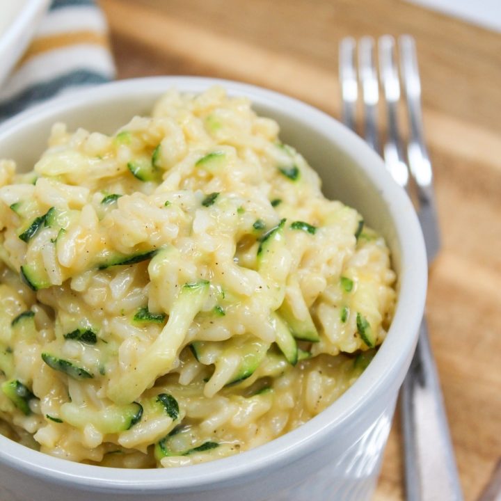 This Easy Zucchini Lemon Risotto takes about 30 minutes to make, and is sure to be a family favorite! It's rich, creamy, and made with nourishing ingredients like zucchini, lemon, full-fat coconut milk, and cauliflower rice.