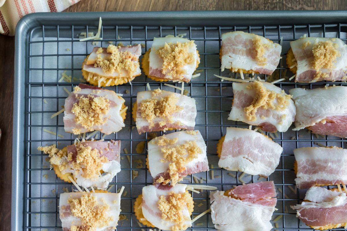 You can use your favorite crackers instead of Town House crackers, though the bacon fits almost perfectly on the club cracker shape and not as well on round or rectangular crackers.