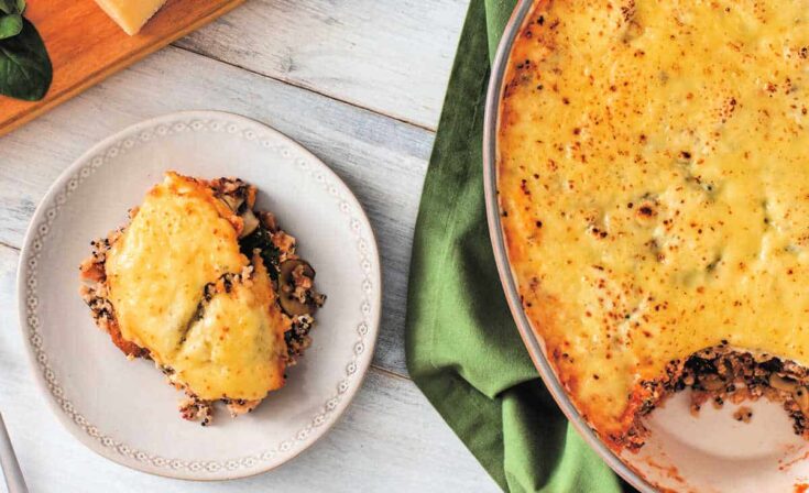 This mushroom spinach casserole is a protein-packed twist on a classic dish, layering hearty quinoa with rich, traditional flavors.
