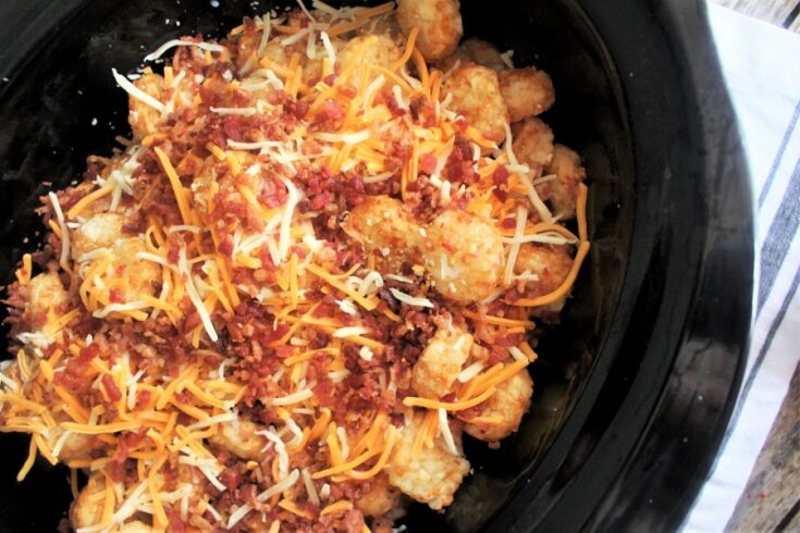 This slow cooker chicken tater tot casserole is loaded with melty cheese and crispy bacon, and it’s ideal for those hectic days when you need a true dump-and-go meal.
