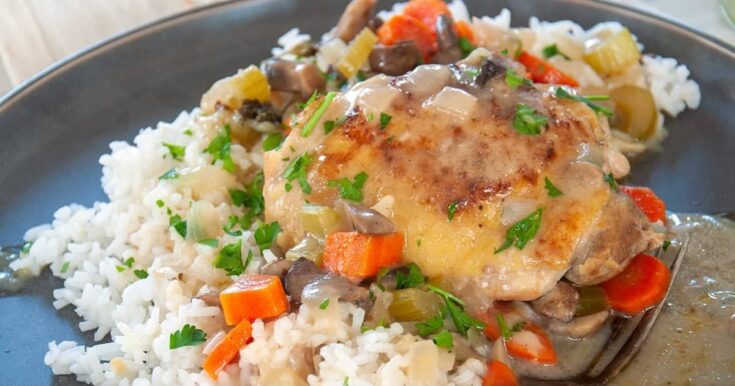 Make a timeless chicken fricassee with tender chicken, creamy sauce, and flavorful vegetables. It’s the ideal comfort dish for family dinners or get-togethers!