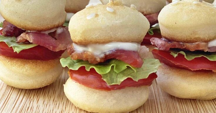 Mini BLT sliders packed with all the classic bacon, lettuce, and tomato flavors—served on a toothpick for the perfect easy appetizer!