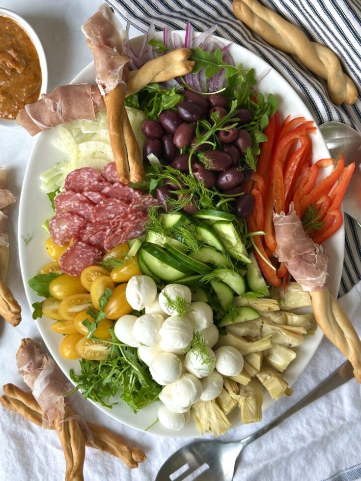 Antipasti Salad with Prosciutto Wrapped Bread Sticks