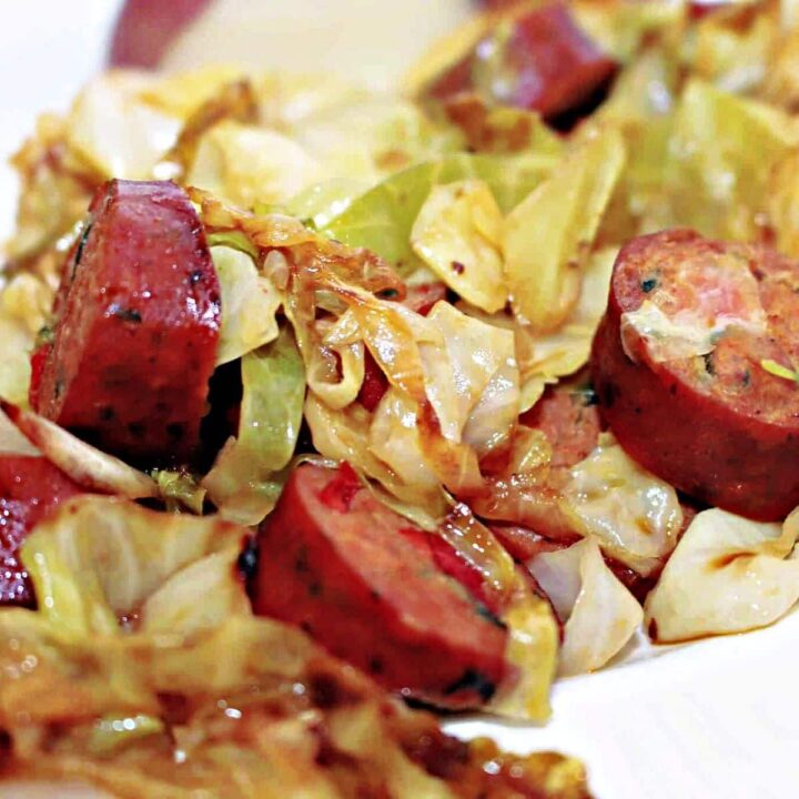This 3-ingredient sausage and cabbage stir fry is one of the easiest recipes ever! With just shredded cabbage, your favorite sausage, olive oil, and about 20 minutes, you’ve got a delicious meal.