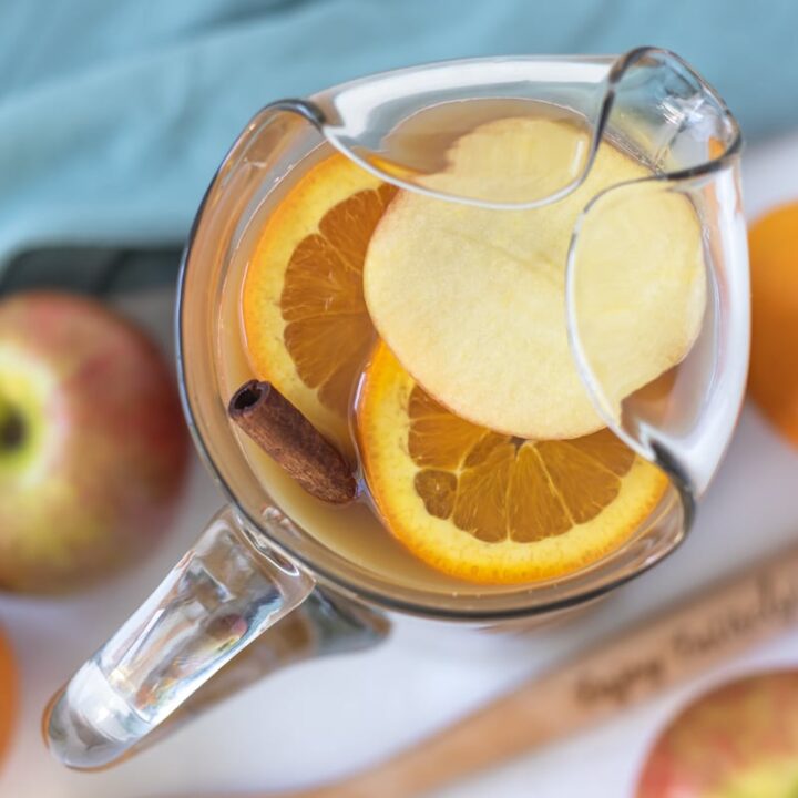 This Sweet Tea Harvest Punch is perfect for fall gatherings. It is made with black tea and perfectly sweetened with orange juice, apple cider, raw honey, and a hint of cinnamon. It’s great served cold or hot.