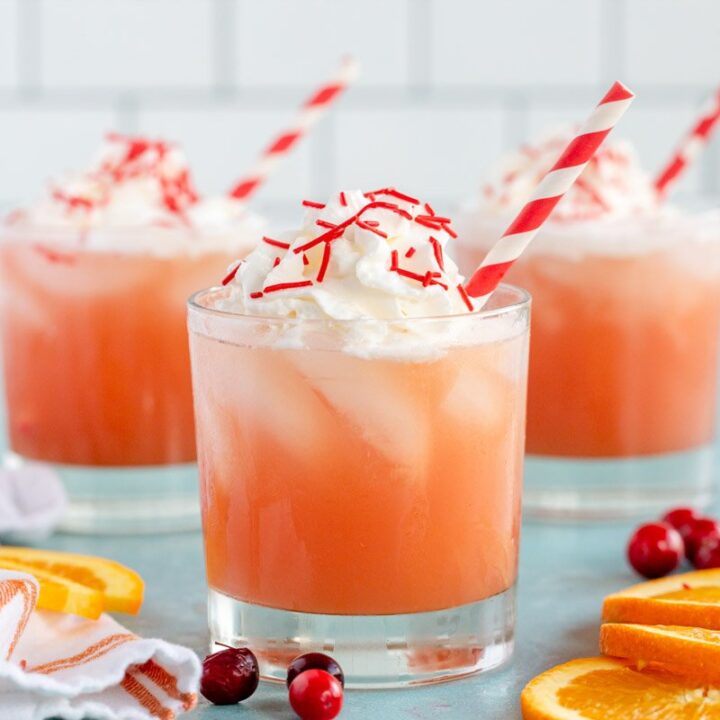 This delicious non-alcoholic Thanksgiving punch combines holiday flavors of cranberry orange with bubbling soda for a drink both kids and adults will love.
