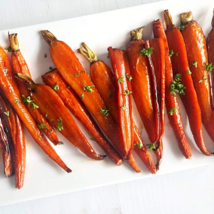 Maple Balsamic Glazed Roasted Carrots are an easy and flavorful way to serve up your carrots! These make an excellent side dish for your dinner and are impressive enough to serve for special dinner occasions!