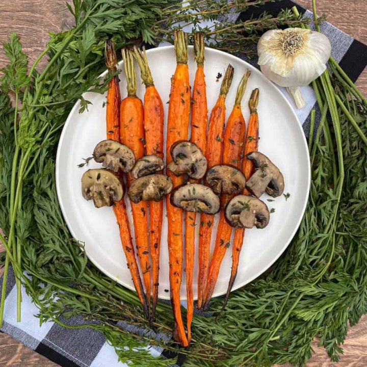 Roasted Carrots and Mushrooms with Garlic and Thyme is one of my favorite side dishes to serve at a dinner party or a cozy dinner at home. Not only is this dish flavorful and delicious, but it makes for a beautiful presentation as well.