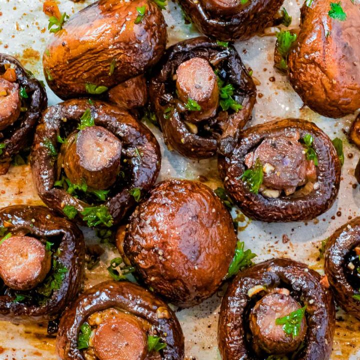 These oven-roasted mushrooms with garlic & soy sauce make the perfect side dish for any meal! Vegan, low carb, keto-friendly & ready in 20 minutes!