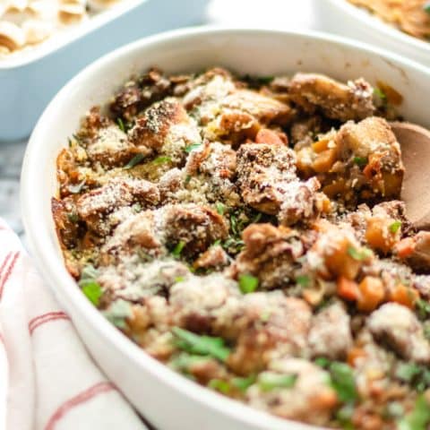 This Vegan Sourdough Bread Stuffing tastes just like a classic stuffing recipe, but with a subtle zing in every bite.